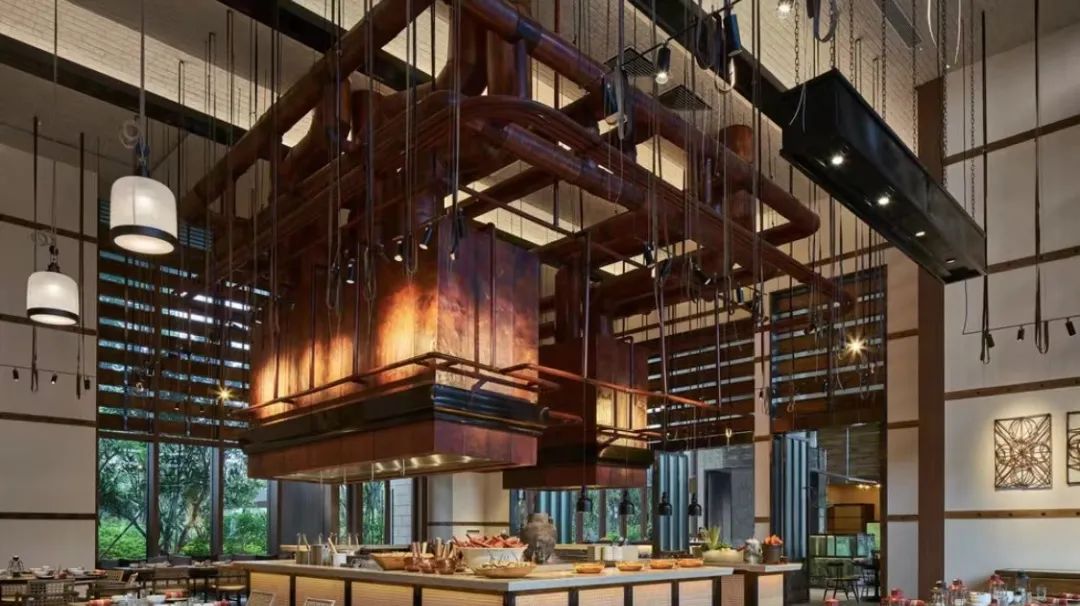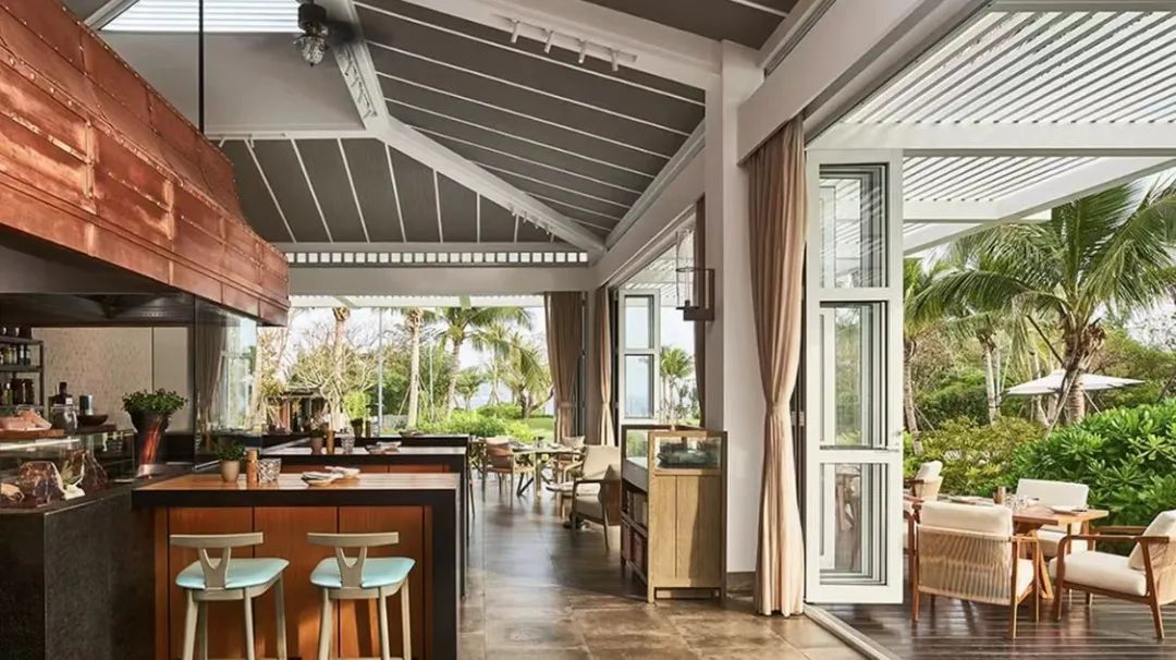 True to its status as an ultra-luxury resort, Rosewood Sanya has spared no effort in crafting its culinary experiences. The property boasts five distinct restaurants and lounges. Their ceiling designs, featuring woven hemp and masonry textures respectively, achieve a seamless fusion of local island heritage and exotic flair.