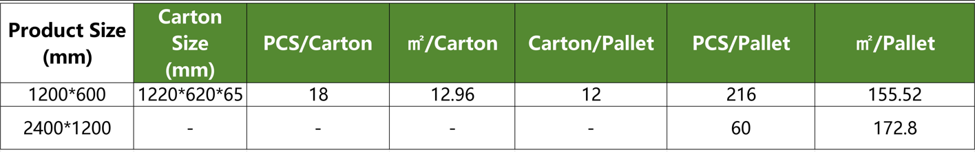 2400*1200mm, 1200*600mm (±2mm) |
