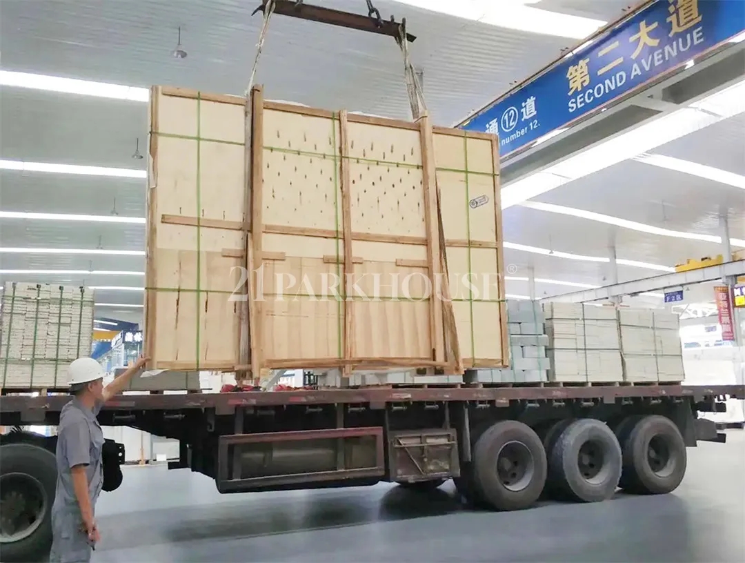 2.A Massive Transport Carbon Footprint: Weighing 50–60kg/㎡, traditional stone is incredibly heavy. Shipping these materials across borders requires significant container space and results in high maritime carbon emissions.